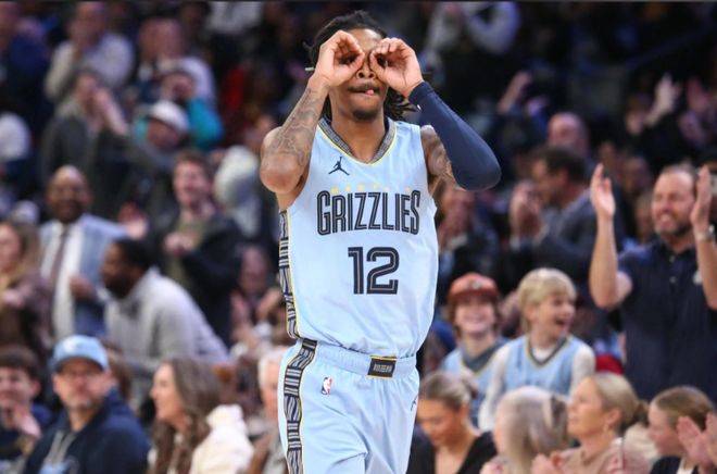 半場數據,灰熊隊這邊,小賈倫-杰克遜5投全中,三分2中2轟下13分2籃板1助攻;賈-莫蘭特投籃7中3,三分2中0得到8分4助攻1搶斷1失誤。